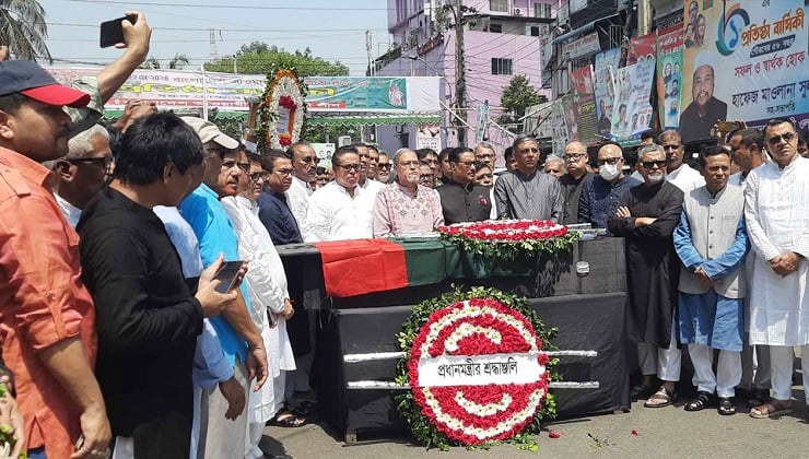 শুক্রবার সকালে ২৩ বঙ্গবন্ধু অ্যাভিনিউয়ে আওয়ামী লীগের কেন্দ্রীয় কার্যালয়ের সামনে তার মরদেহের প্রতি দলের সাধারণ সম্পাদক ওবায়দুল কাদেরের নেতৃত্বে এ শ্রদ্ধা জানানো হয়।