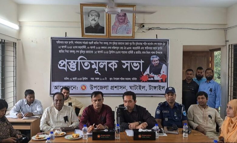 স্বাধীনতার মহান স্থপতি, জাতির পিতা বঙ্গবন্ধু শেখ মুজিবুর রহমান-এর ৪৯তম শাহাদাত বার্ষিকী ও জাতীয় শোক দিবস উপলক্ষে টাঙ্গাইলের ঘাটাইলে প্রস্তুতি সভা অনুষ্ঠিত হয়েছে।