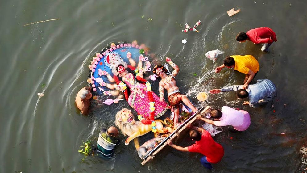 বিসর্জনের মধ্য দিয়ে শেষ হচ্ছে দুর্গোৎসব