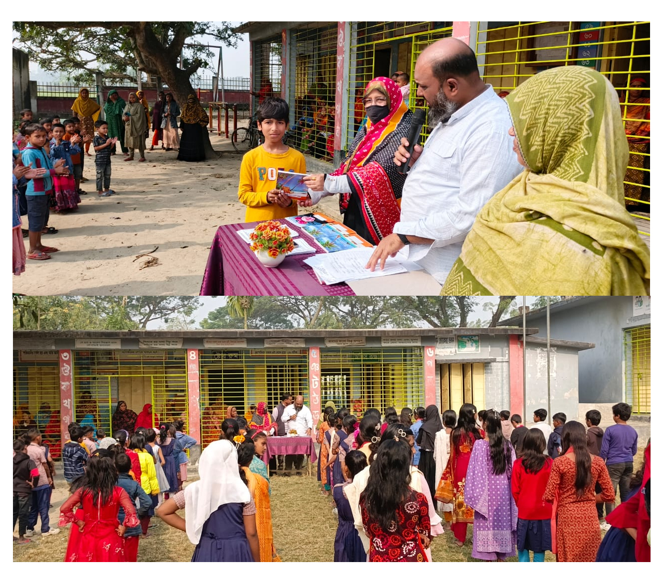 প্রধান শিক্ষিকা, প্রথমবেলাকে বলেন, আগামীকালকে নতুন বই দেওয়া হবে, শিশু শ্রেনীর থেকে , চতুর্থ শ্রেণি পর্যন্ত, সকল ছাত্র-ছাত্রীদের বই প্রদান করা হবে, ও পঞ্চম শ্রেণীর সবাই ভালো ভাবে পাশ করেছেন, পাশ করে, ক্লাস ৬ শ্রেণীতে ছাত্র-ছাত্রীরা, হাই স্কুলে ভর্তি হবেন।
