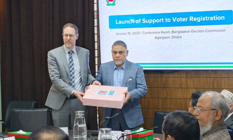 রোববার (১৯ জানুয়ারি) ভোটার তালিকা হালনাগাদ কার্যক্রমের জন্য ল্যাপটপ, স্ক্যানারসহ অন্যান্য উপকরণগুলো প্রধান নির্বাচন কমিশনার (সিইসি) এ এম এম নাসির উদ্দিনের কাছে হস্তান্তর করে জাতিসংঘের উন্নয়ন কর্মসূচি-ইউএনডিপি। এ উপলক্ষ্যে আয়োজিত অনুষ্ঠানে সিইসি এসব কথা বলেন।