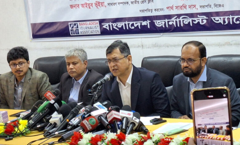 বুধবার (২৯ জানুয়ারি) দুপুরে জাতীয় প্রেস ক্লাবে বাংলাদেশ জার্নালিস্ট অ্যাসোসিয়েশনের উদ্যোগে ‘জুলাই গনঅভ্যুত্থান : গণমাধ্যম ও সাংবাদিকতা’ শীর্ষক আলোচনা সভায় তিনি এই দাবি জানান। অনুষ্ঠানের মাধ্যমেই আত্মপ্রকাশ ঘটেছে সংবাদকর্মীদের নতুন সংগঠন বাংলাদেশ জার্নালিস্ট অ্যাসোসিয়েশনের।