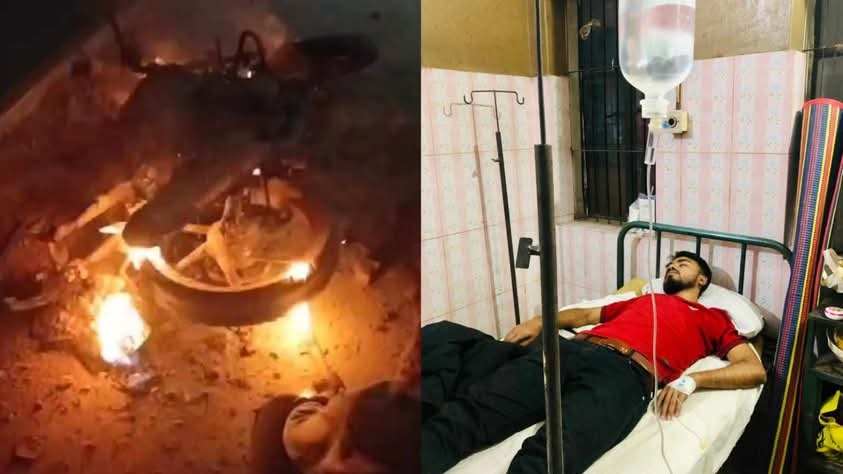 লালপুরে মেয়ের গোপন বিয়ে না মানায় মোটরসাইকেল পুড়িয়ে দিলেন শ্বশুর পক্ষ,জামাই হাসপাতালে