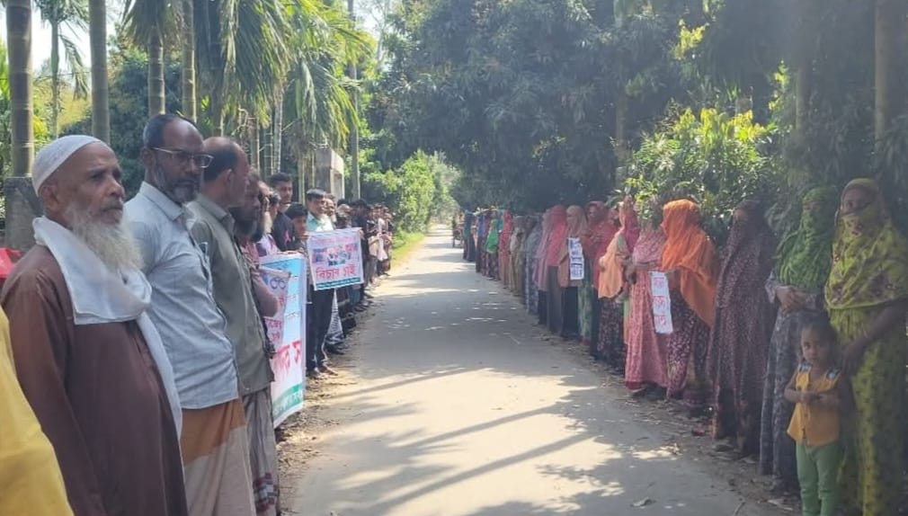 এলাকাবাসী ও মানববন্ধনে অংশগ্রহণকারীরা দ্রুত ফিরোজ আহম্মেদের বিচার নিশ্চিত করা, তার অপতৎপরতা বন্ধ করা এবং ভুক্তভোগী পরিবারের নিরাপত্তা নিশ্চিত করার দাবি জানান।