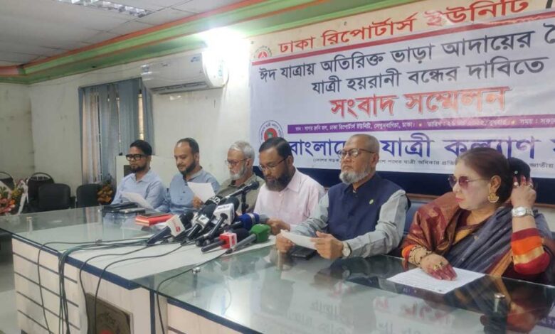 যাত্রী কল্যাণ সমিতির এক পর্যবেক্ষণ তুলে ধরে তিনি বলেন, ঈদযাত্রায় ২০ মার্চ থেকে ৩১ মার্চ পর্যন্ত ঢাকা ও আশেপাশের এলাকায় ঈদ বাজারসহ নানান প্রয়োজনে সড়ক, রেল, নৌ ও আকাশ পথের বিভিন্ন শ্রেণির গণপরিবহনে ২২ কোটি ৭৪ লাখ ৯০ হাজার ট্রিপ মানুষের যাতায়াত হতে পারে। এসব যাত্রীদের ঈদ বকশিশ বা অতিরিক্ত ভাড়া আদায়ের নামে ৮৩২ কোটি ৩০ লাখ টাকা বাড়তি ভাড়া আদায় চলছে।