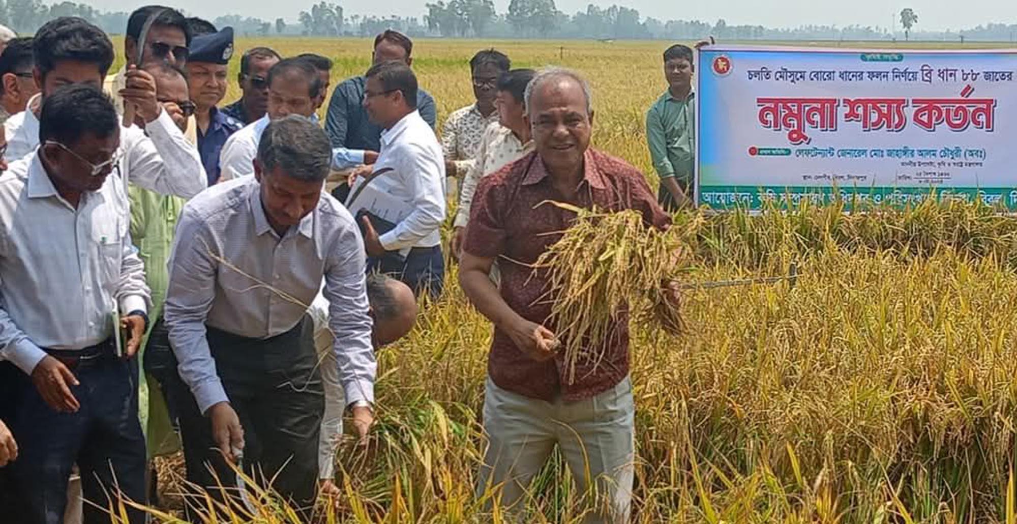 বৃহস্পতিবার (৮ এপ্রিল) দুপুরে দিনাজপুরের বিরল উপজেলার মোকলেসপুর ইউনিয়নের ঢেলপির ব্লকে বোরো ধান কর্তন করে নমুনা শস্য কর্তনের উদ্বোধন করেন। পরে কৃষকদের সঙ্গে মতবিনিময় সভায় বক্তব্য রাখেন।