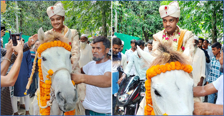 কনের বাবা মো. ফারুক শেখ বলেন, ‘পুরোনো ঐতিহ্য ঘোড়ায় চড়ে বর আসা। এ দৃশ্যটি দেখে সবাই খুশি। একটি ভিন্নধর্মী বিয়ের উৎসবে পরিণত হয়েছে।’