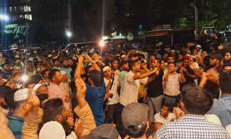 নিজস্ব প্রতিবেদক, সুমন: চট্টগ্রাম প্রেস ক্লাবের সামনে গণতান্ত্রিক ছাত্রজোটের মানববন্ধনে হামলার ঘটনার পর উত্তপ্ত হয়ে ওঠে নগরীর রাজপথ। হামলায় জড়িত থাকার অভিযোগে ওবায়দুর রহমান ও মো. সেলিম নামে দুজনকে আটক করে পুলিশ। এর প্রতিবাদে বুধবার (২৮ মে) রাত ৯টা থেকে ১২টা পর্যন্ত নগরের কোতোয়ালি থানাকে ঘিরে বিক্ষোভ করেন শাহবাগবিরোধী ঐক্যের নেতাকর্মীরা।