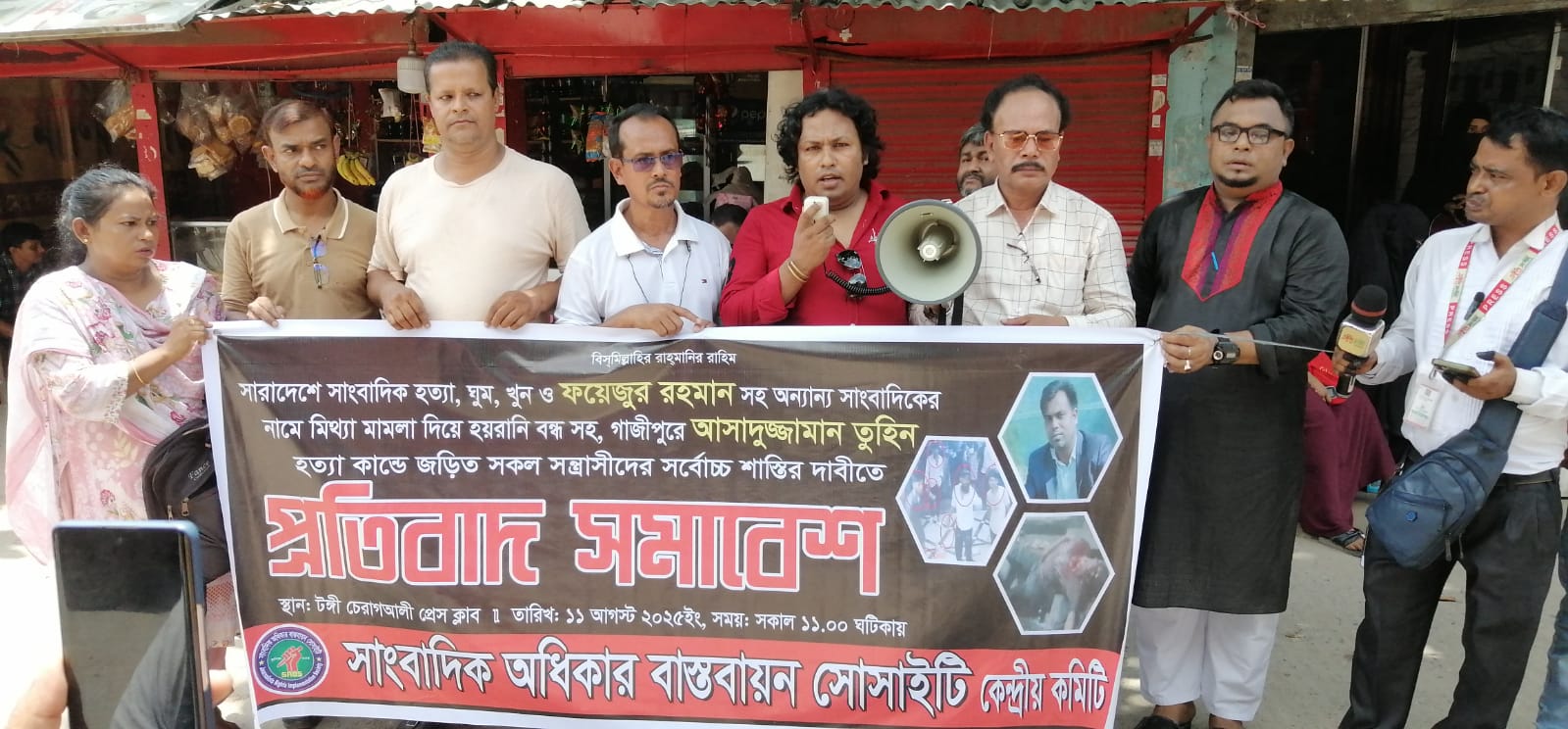 সাংবাদিক অধিকার বাস্তবায়ন সোসাইটির চেয়ারম্যান সুমন চৌধুরী, গাজীপুর জেলা রিপোর্টার্স ইউনিটির সভাপতি এম. কাজল খান, সাংবাদিক অধিকার বাস্তবায়ন সোসাইটির কোষাধ্যক্ষ রাজু আহম্মেদ তাইজুল, সাংবাদিক আবু সালেহ মুছা, মোস্তাকিম খান বাংলাদেশ সাংবাদিক জোট গাজীপুর মহানগর, সাংবাদিক মানিক হোসেন বিজয়, পলাশ সরকার সাংবাদিক পাপেল, সাংবাদিক নুরুজ্জামান শেখ যুগ্ম আহবায়ক বাংলাদেশ সাংবাদিক জোট গাজীপুর মহানগর, সাংবাদিক জাকারিয়া, সাংবাদিক আমান উল্লাহ আমান, সাংবাদিক সুলতানা সরকার, সাংবাদিক নয়ন মনির, সাংবাদিক অপু, সাংবাদিক রেজা, সাংবাদিক মুন্নী এবং সাংবাদিক মুক্তা রীনা প্রমুখ।
