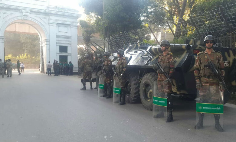 নিজস্ব প্রতিবেদক: মানবতাবিরোধী অপরাধের মামলায় সাবেক প্রধানমন্ত্রী শেখ হাসিনাসহ তিনজনের মামলার রায় ঘোষণাকে কেন্দ্র করে আন্তর্জাতিক অপরাধ ট্রাইব্যুনাল ও এর আশপাশে নিরাপত্তা জোরদার করা হয়েছে। ট্রাইব্যুনালের সামনের পুলিশ, র্যাব, বিজিবি ও সেনাবাহিনীর সদস্য মোতায়েন রয়েছে।