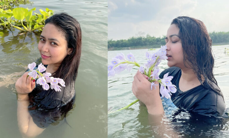 শেয়ার করা ছবিতে দেখা যায়, খোলামেলা চুলে, কালো টি-শার্ট পরে ভাবনা কচুরিপানার ফুল হাতে ক্যামেরাবন্দী হয়েছেন। ফুলের সঙ্গে তার মায়াবী চাহনী নেটিজেনদের নজর কেড়েছে।