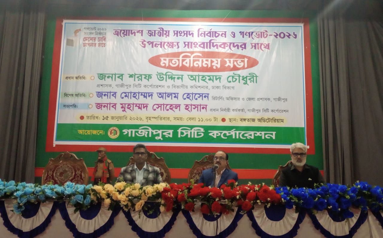 মোঃ পাপেল মিয়া, গাজীপুর জেলা প্রতিনিধি: আসন্ন ত্রয়োদশ জাতীয় সংসদ নির্বাচন ও গণভোট-২০২৬ উপলক্ষে সাংবাদিকদের সঙ্গে এক মতবিনিময় সভা অনুষ্ঠিত হয়েছে।