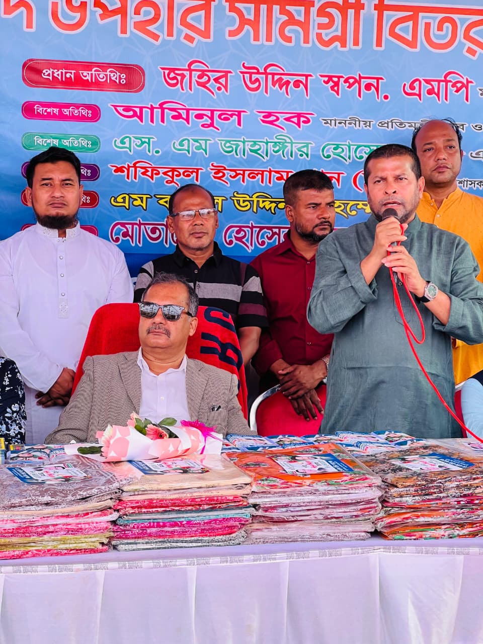 অনুষ্ঠানে প্রধান অতিথি হিসেবে উপস্থিত ছিলেন তথ্য ও সম্প্রচার মন্ত্রণালয়ের সাবেক এমপি ও বিএনপির কেন্দ্রীয় নেতা জহির উদ্দিন স্বপন। তিনি তার বক্তব্যে বলেন, "সমাজের অসহায় ও নিম্নআয়ের মানুষের পাশে দাঁড়ানো আমাদের নৈতিক ও মানবিক দায়িত্ব। ঈদের আনন্দ সবার মাঝে ছড়িয়ে দিতে এ ধরনের উদ্যোগ অত্যন্ত প্রশংসনীয় এবং এই ধারা অব্যাহত রাখতে হবে।"