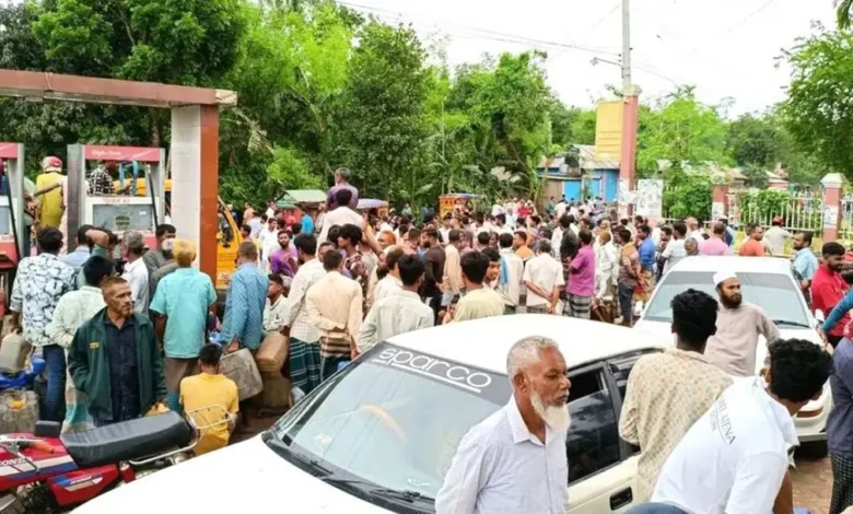 এ সময় এক ব্যক্তি পাম্প থেকে প্লাস্টিকের বোতলে জ্বালানি তেল নেওয়ার সময় লাইনে অপেক্ষমান লোকজন প্রতিবাদ করে। এক পর্যায়ে বাগবিতণ্ডা সৃষ্টি হয় এবং লোকজন উত্তেজিত হয়ে ফিলিং স্টেশন লক্ষ্য করে ইটপাটকেল নিক্ষেপ করে।